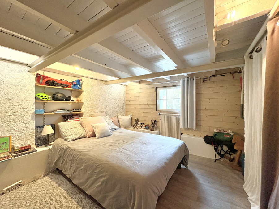 À l’étage, deux grandes chambres (13 m² et 21 m² au sol) + un grenier de rangement.